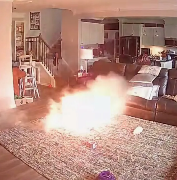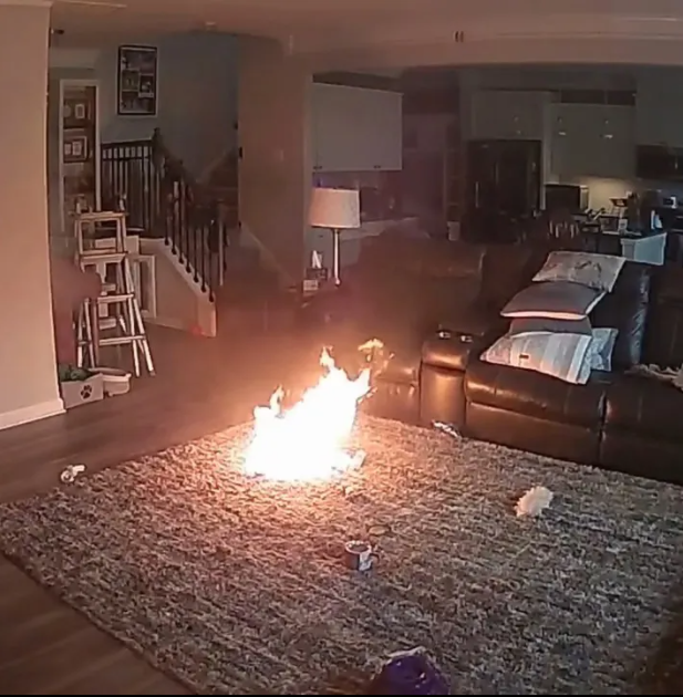 Olay, Chapel Hill kentinde meydana geldi. Görüntülerde Colton’un yerde duran küçük bir cihazla oynadığı, ardından cihazdan yoğun duman çıktığı görülüyor. Köpek neye uğradığını şaşırarak hızla mutfağa kaçıyor. Birkaç saniye sonra ise pil büyük bir alev topuna dönüşüyor ve halı tutuşuyor. Neyse ki evde kimse olmadığı sırada çıkan yangın kısa sürede kendi kendine sönüyor.
